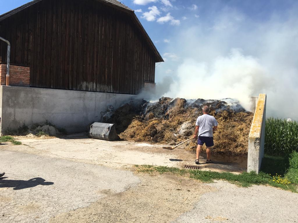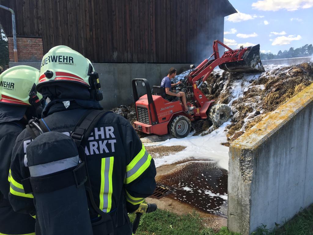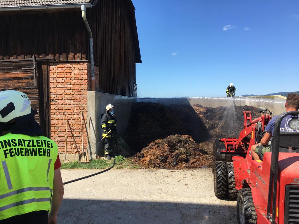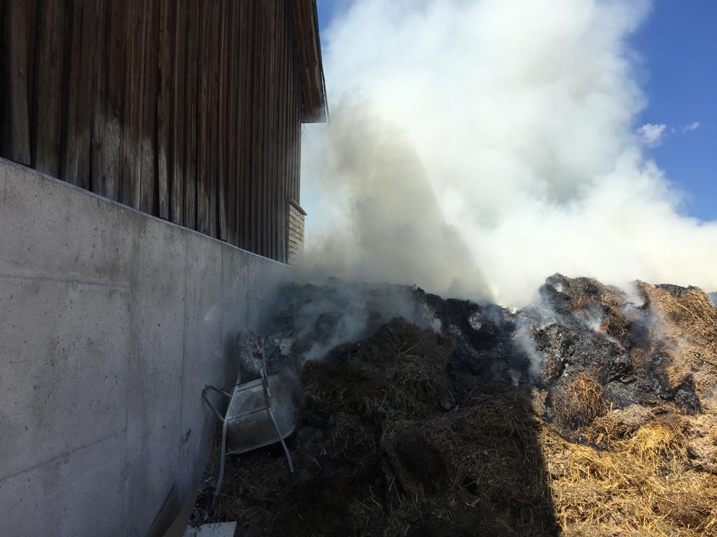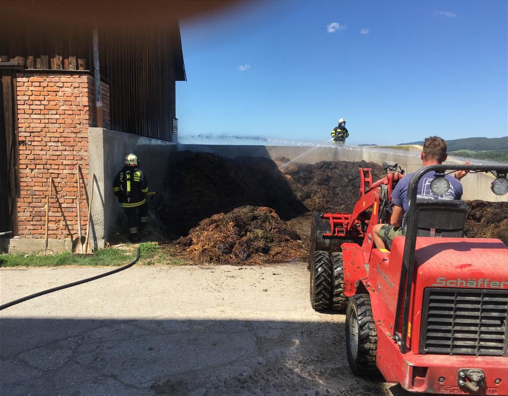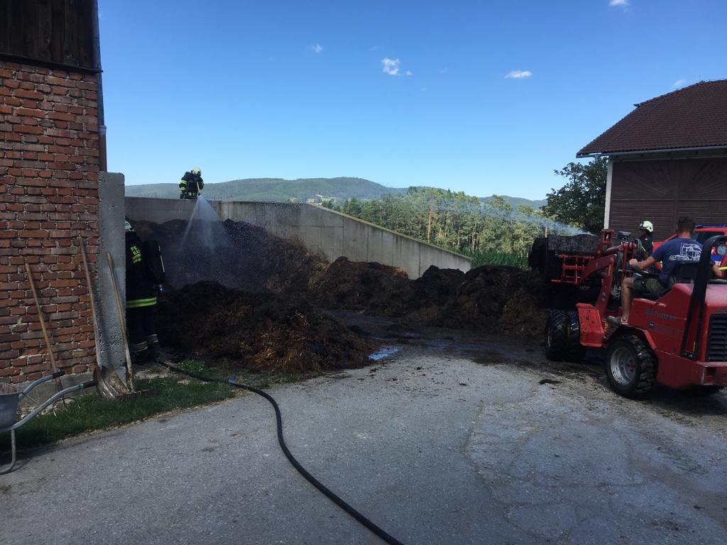 Die Löscharbeiten erwiesen sich dadurch schwierig weil sich der „Brandherd“ im inneren des Misthaufens befand und dieser schritt für schritt auseinandergeräumt werden musste, Gottseidank mit Unterstützung eines Laders. Die angrenzende Scheune wurde durch dass Rasche eingreifen einiger Nachbarn mittels Feuerlöscher nicht betroffen.